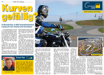 Die richtige Einschätzung und Vorbereitung sowie das Durchfahren einer Kurve inklusive möglicher Notmanöver während der Kurvenfahrt - all diese Aspekte der Kurvenfahrt werden mit den Kursteilnehmern theoretisch erörtert und anschließend in die Praxis umgesetzt. Wobei das Wort „Üben“ nicht mal ansatzweise den Spaß erahnen lässt, den das vielseitige Übungsgelände des ADAC Fahrsicherheitszentrum Lüneburg dem kurvenhungrigen Motorradfahrer tatsächlich bietet: Kreisbahn, Handlingkurs mit Schikanen und lang gezogenen Kurven, sich zuziehende Kurven, Serpentinen mit Gefällen von 7% bis 9%, Kehren, die fahrerisch anspruchsvolle Kartbahn - und das alles sowohl links als auch rechts herum.